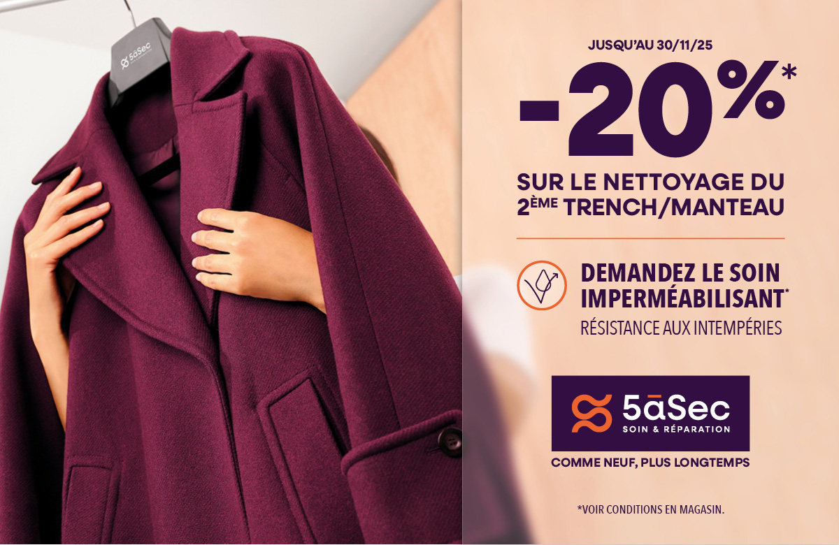Jusqu’au 30 novembre 2025 20% sur le nettoyage du 2ème trench/manteau* * Voir conditions en magasin PROMOTIONS EN COURS Pfister – Offres de l’automne – lits Migros Restaurant – Offre Etam – Octobre rose Carat – Jeu en or Acuitis – Verres progressifs 5àsec – 20% manteau Découvrez les offres illimitées d'Etam Promod – Nouvelle collection