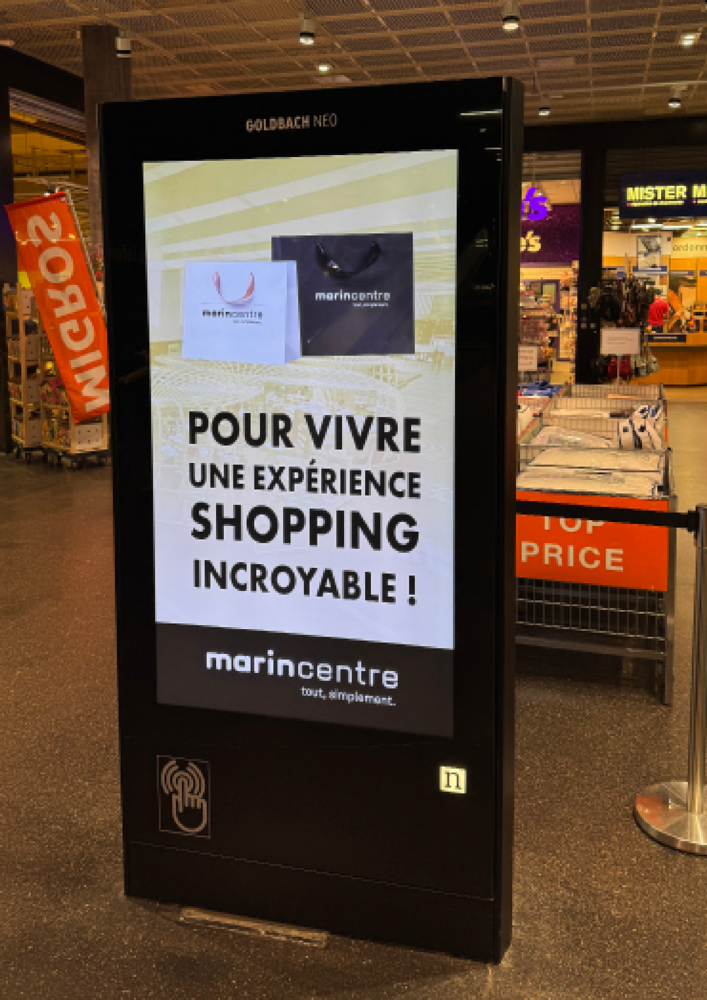 Le centre est équipé d’écrans publicitaires répartis dans les différents étages.